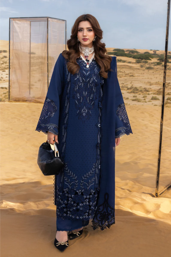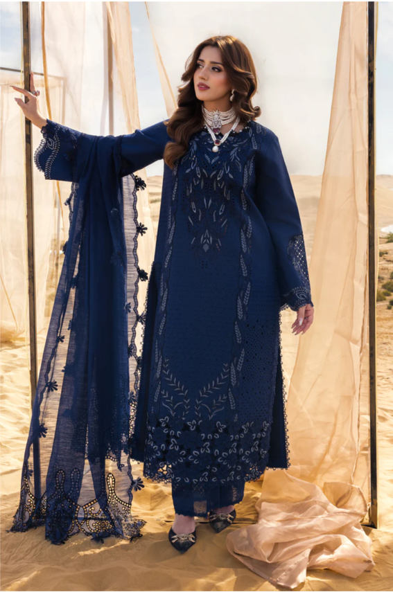 This midnight blue ensemble is an exquisite choice for Eid festivities, formal evening gatherings, and upscale social events.